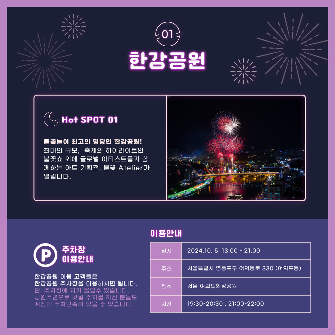 | 2024년 여의도 서울세계불꽃축제, 관람장소, 사진찍기 좋은 명당, 주차방법 (6) | 2024.10.05 |